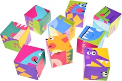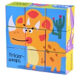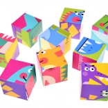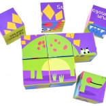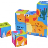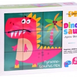 Deväť kociek umožňuje zostaviť šesť rôznych obrázkov dinosaurov pomocou pestrých ilustrácií pre ľahké učenie.