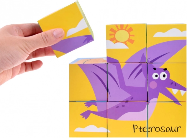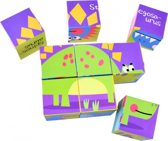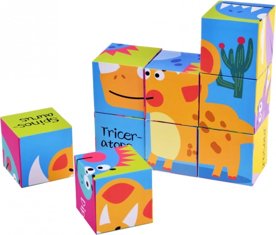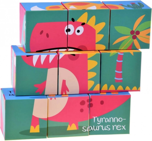 Táto sada veľkých kociek s dinosaurami je ideálnou vzdelávacou hračkou pre deti, ktoré sa zaujímajú o praveké zvieratá. Obsahuje 9 kociek, ktoré umožňujú zostaviť 6 rôznych obrázkov dinosaurov. Každá kocka je vyrobená z pevného kartónu, ktorý zaisťuje ich ľahkosť a jednoduchú manipuláciu. Deti môžu objavovať rôzne druhy dinosaurov prostredníctvom pestrých ilustrácií, ktoré im pomôžu lepšie porozumieť týmto fascinujúcim tvorom.