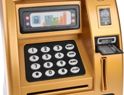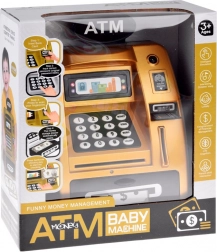 Zoznámte sa s zlatým bankomatom, ktorý vyzerá a funguje ako skutočný bankomat. Je vyrobený z plastu s realistickým dizajnom zahŕňajúcim klávesnicu, digitálny displej a slot pre kartu. Vložením hračkovej karty a zadaním PIN kódu deti aktivujú funkcie bankomatu.