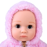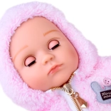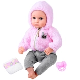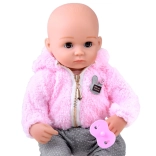 Bábika vyzerá ako novorodenec. Má mäkké látkové telíčko a hlavu, ruky aj nohy z tvrdej gumy. Keď položíte bábiku, jej oči sa zatvoria. Ako skutočné bábätko nemá vlásky na hlave, no pred zimou ju chráni teplá, príjemná ružová mikina s kapucňou. Celý outfit dopĺňajú štýlové sivé legíny s bodkami.