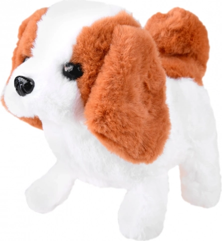Psík chodí dopredu, šteká, vrtí chvostíkom a pri hladení po hlave vydáva jemné šteňacie zvuky – ideálne na interaktívne hranie.