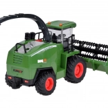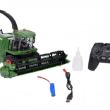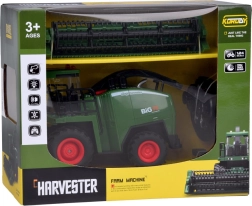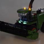Tento detailne spracovaný kombajn na diaľkové ovládanie prináša deťom autentický zážitok zo žatvy. Po spustení budete počuť štart a voľnobeh motora, pri jazde vpred sa rozsvietia predné svetlá a maják, pri cúvaní znie signál a svetlá blikajú. Jediným tlačidlom možno efekty svetiel a zvukov vypnúť.