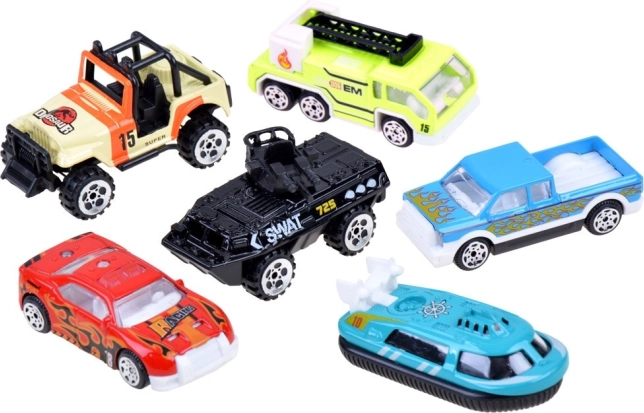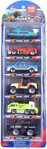 Táto pestrá sada prináša mix vozidiel – od pretekárskych áut po špeciálne stroje – ideálna na kreatívne hry, preteky aj tematické misie. Kovové karosérie zaisťujú odolnosť, zatiaľ čo plastové pohyblivé časti dodávajú autíčkam realistickosť.