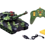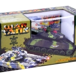 - Kompletná výbava v balení: RC tank, multifunkčný ovládač, USB nabíjačka, akumulátor do tanku, figúrka tankistu s guľometom.