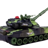 Užite si akčné súboje s RC tankom v lesnom maskovaní. Model zvláda jazdu vpred/vzad, otáčanie na mieste a má otočnú vežu o 180° na každú stranu (spolu 360° pokrytie). Pri zásahu sa rozsvietia/zhasnú kontrolky stavu bitky a tank simuluje realistický odhoz (spätný ráz), ktorý umocňuje atmosféru skutočného bojiska.