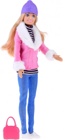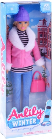Štýlová bábika ANLILY v zimnom outfite poteší každú malú milovníčku módy. Má dlhé blond vlasy na česanie a styling, nosí ružovú zimnú bundičku s bielym kožúškom, fialovú čiapku, modré legíny a dopĺňa ju ružová kabelka. Vďaka pohyblivým končatinám je ideálna na kreatívne hranie a rozprávanie príbehov.