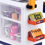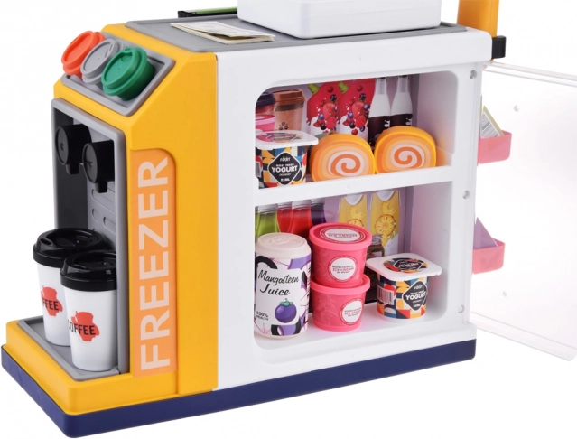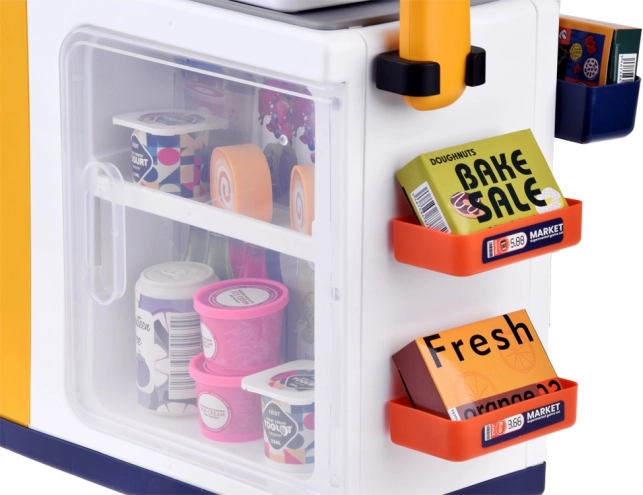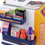 Uzatvárateľná chladiaca časť pojme jogurty, džúsy, dezerty a ďalšie makety potravín. Ideálne na hru na kaviareň, obchod aj samoobslužnú pokladňu.