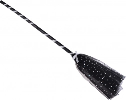 Skladacia metla s čierno-bielym špirálovým vzorom a ozdobnými strapcami dodá kostýmu hravý šmrnc.