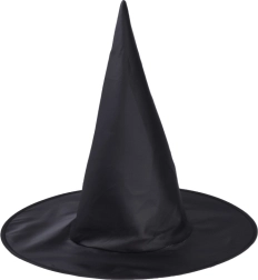 Tradičný čierny čarodejnícky klobúk s vysokým hrotom a širokou krempou dotvorí autentický kostým.