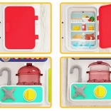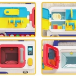 Súprava obsahuje mikrovlnku, sporák a ďalšie kuchynské prvky s funkciami, ktoré simulujú skutočné zvuky a efekty varenia.