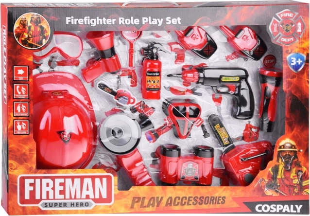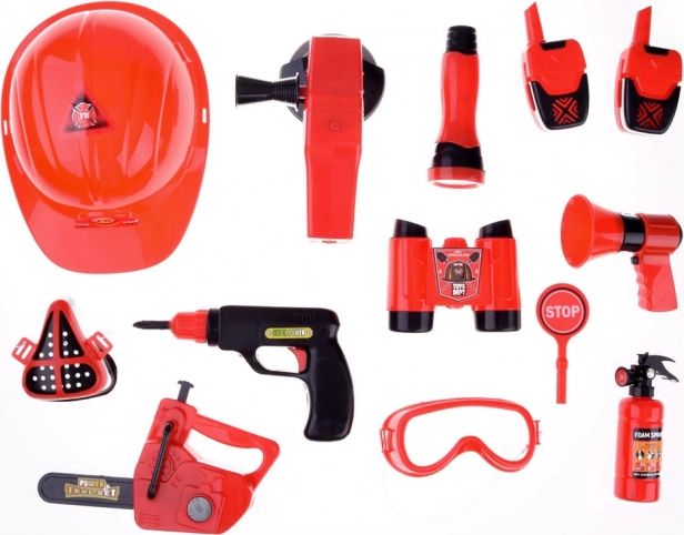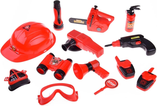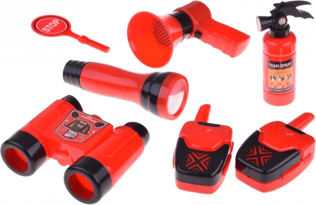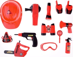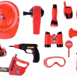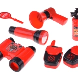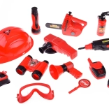 Súčasťou sady je všetko potrebné pre hru na hasičov: prilba, ďalekohľad, megafón, maska, a ďalšie bezpečnostné doplnky.