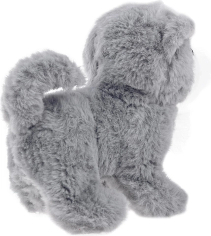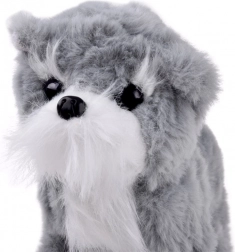 Svetlé a lesklé oči, realistický nos a hebký sivý plyš robia psíka vynikajúcim spoločníkom ako pre hru, tak aj ako dekoráciu.