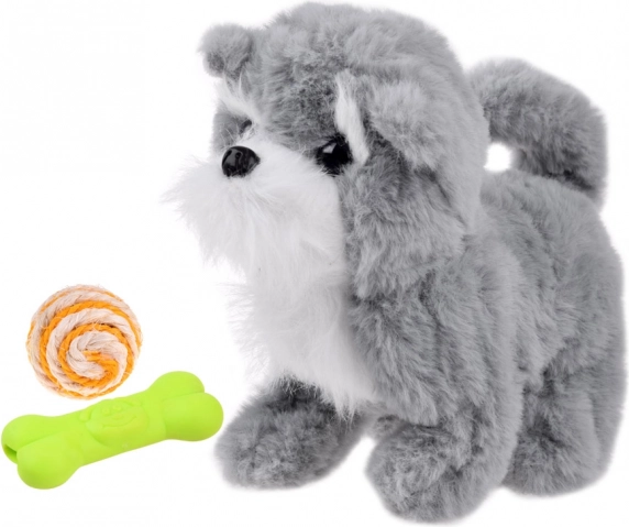 Interaktívny sivý psík je skvelou hračkou pre deti, ktoré sa chcú hrať s niečím viac než len obyčajnou plyšovou hračkou. Tento psík nielenže šteká a piští, ale tiež chodí dopredu a cúva, pohybuje hlavou, otvára a zatvára papuľku a vrtí chvostom. Psík navyše prichádza s hravými doplnkami — mäkkou gumovou kosťou a farebnou loptičkou.• Interakcia a pohyb• Množstvo zábavy a rôzne aktivity• Rozvíja detskú kreativitu a fantáziu