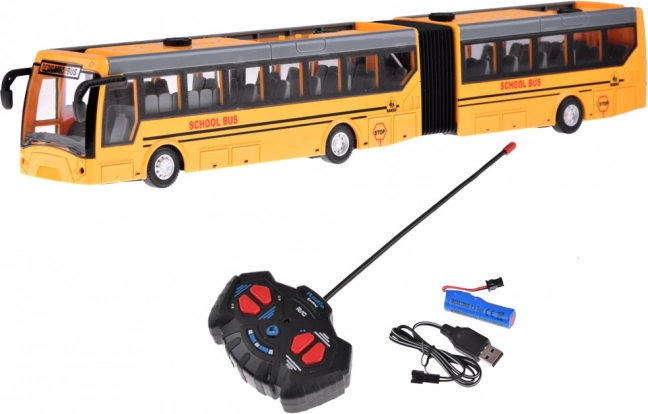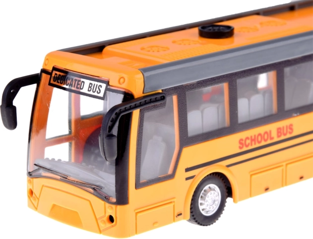 Zábavný školský autobus na diaľkové ovládanie je pohyblivý model s dĺžkou 36,5 cm, ktorý ponúka veľa zábavy pre každého fanúšika veľkých vozidiel. Vyrobený z plastu, tento realisticky stylizovaný autobus žiari LED osvetlením počas jazdy.