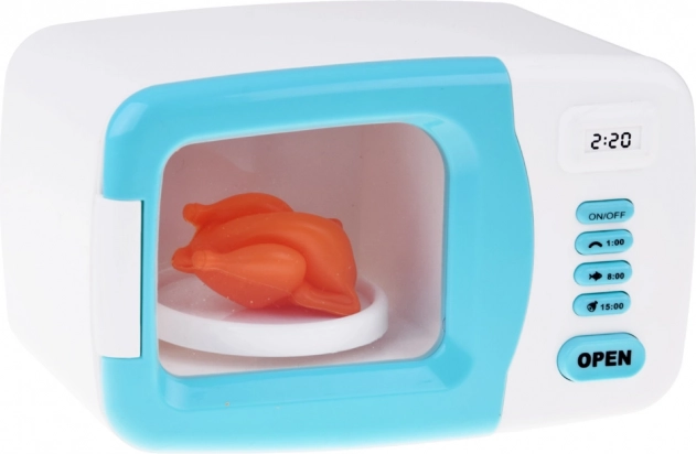 Zábavné hranie napomáha deťom rozvíjať jemné motorické zručnosti a povedomie o domácich činnostiach. Mikrovlnná rúra je vyrobená z plastu v bielo-modrej farebnej kombinácii a je realistickou replikou kuchynského spotrebiča.