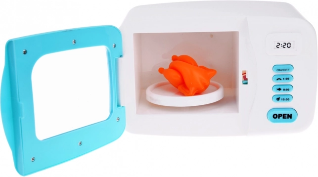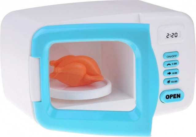 Vnútri mikrovlnnej rúry sa nachádza plastový model kurčaťa, ktorý sa pri zapnutí otáča na tanieri. Interiér rúry je počas imitovanej prevádzky osvetľovaný červeným svetlom, čo pridáva na autenticite zážitku. Tento produkt podporuje detskú fantáziu a podnecuje záujem o varenie a prípravu pokrmov.