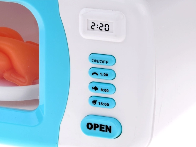 Mikrovlnná rúra sa pýši realistickým dizajnom s digitálnym displejom a autentickými funkciami, ako je otáčajúci sa tanier a svetelné efekty.