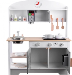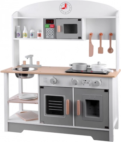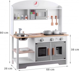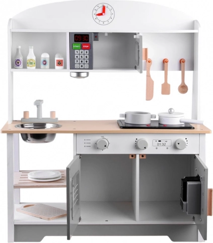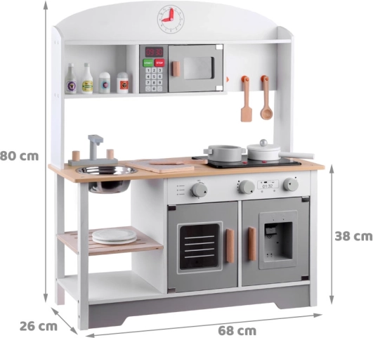 Táto detská kuchynka je esteticky spracovaná a zaručuje nielen výbornú zábavu, ale tiež prispieva k rozvoju dieťaťa. Deti milujú napodobňovanie dospelých a táto kuchynka im umožňuje hrať sa na varenie, upratovanie a ďalšie činnosti súvisiace s prevádzkou domácnosti.