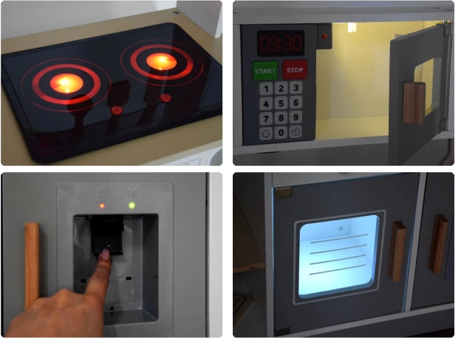 Zvukové efekty varenia, podsvietenie platne a funkčný vodný dávkovač zaisťujú maximálne zapojenie do hry.