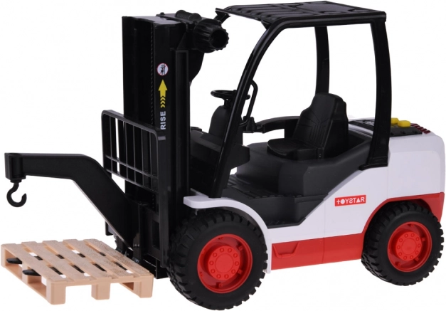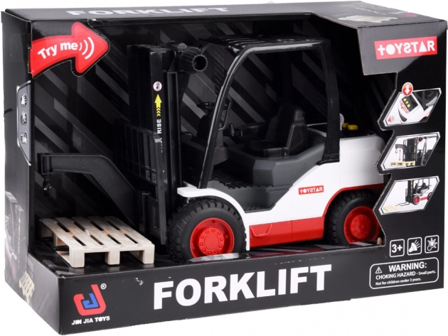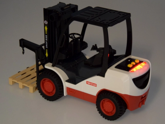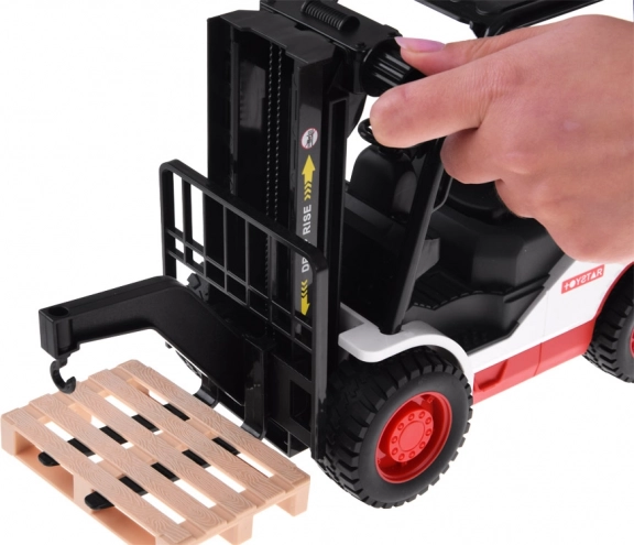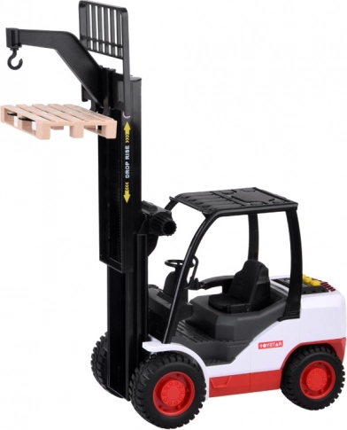 Vysokozdvižný vozík je precízne vyrobený z plastu a navrhnutý tak, aby vyzeral ako skutočný stroj. Má frikčný pohon, ktorý umožňuje jeho pohyb po položenom povrchu. Obsahuje rôzne zvukové efekty, ako je spúšťanie motora, pracovný zvuk a zvuk pre cúvanie.