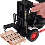 Sada obsahuje vysokozdvižný vozík a paletu, čo poskytuje deťom možnosť hrať sa na stavebné a logistické operácie. Vozík má gumové kolieska pre jednoduchý pohyb a nastaviteľný zvyšovací mechanizmus, ktorý je možné ovládať pomocou kľuky.