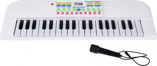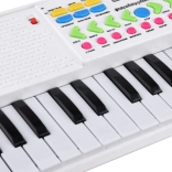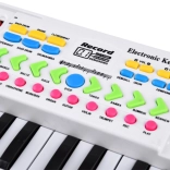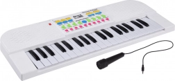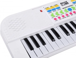 Elektronický klávesník je ľahký a vyrobený z plastu, čo zaručuje jednoduchú manipuláciu pre deti. Vďaka farebným ovládacím tlačidlám je použitie intuitívne.