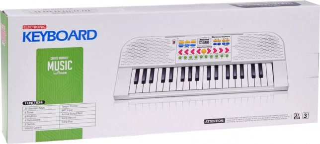Klávesník disponuje 8 rytmami a zvukmi od viedenského valčíka po sambu, 8 tlačidlami pre zmenu nástrojov a funkciou DEMO, ktorá umožní deťom zoznámiť sa s možnosťami zariadenia.