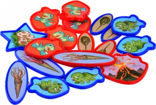 Sada obsahuje 15 modrých a 15 červených žetónov s atraktívnymi dinosaurími motívmi. Príjemná veľkosť uľahčuje uchopenie a zvyšuje pohodlie pri hre.