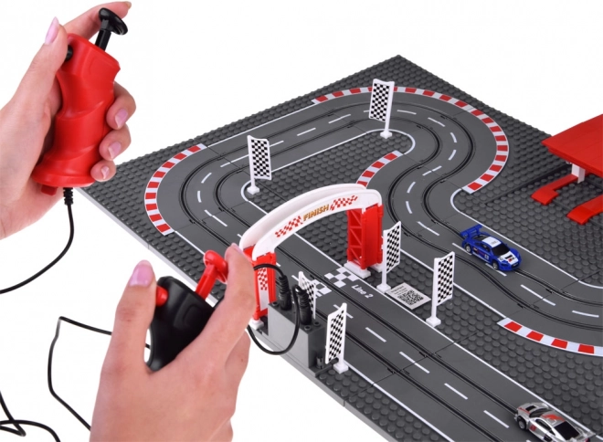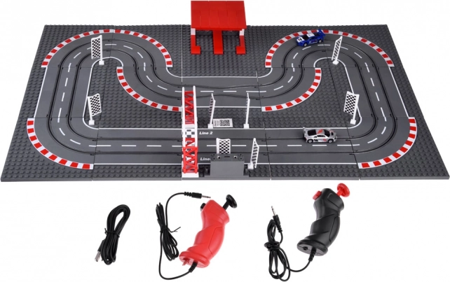 Dvojica ručných ovládačov s plynulým dávkovaním rýchlosti sa pripája k stanici na dráhe a zaručuje presné riadenie v zákrutách aj na rovinkách. Vďaka napájaniu cez USB nie sú potrebné žiadne batérie – stačí zapojiť a pretekať. V balení nájdete všetko pre rýchly štart: