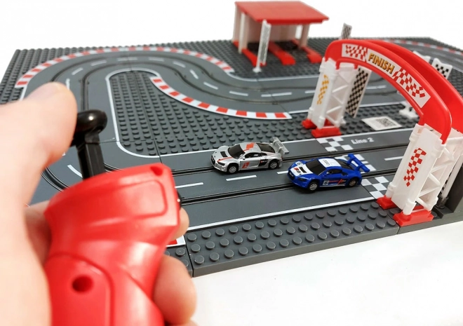 Modulárna základňa s 15 doskami a dielmi pre START/CIEĽ a parkovanie vám umožní vytvárať okolo trate vlastné stavby z kociek a meniť okruh podľa chuti.