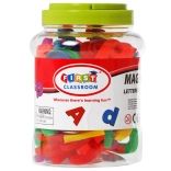 Farebná sada magnetických písmeniek, číslic a matematických znakov pre deti. Obsahuje celkovo 80 dielov na zábavné učenie na chladničke či tabuli. Podporuje rozvoj čítania, počítania a jemnej motoriky. Diely sa spoľahlivo prichytia na akýkoľvek kovový povrch a výrazné farby lákajú k objavovaniu.