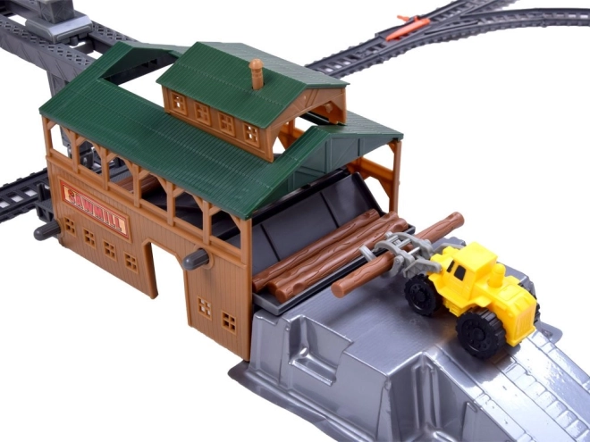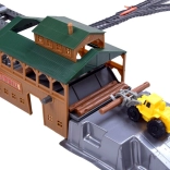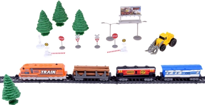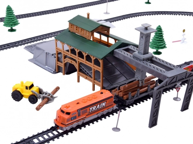 - Obsahuje všetky potrebné prvky na hru vrátane tratí, dopravných značiek, stromov a prekládkovej stanice s nákladným vlakom a rôznymi vagónmi.