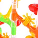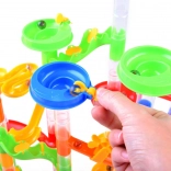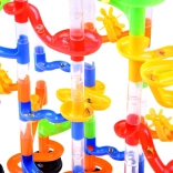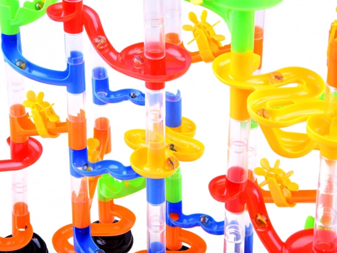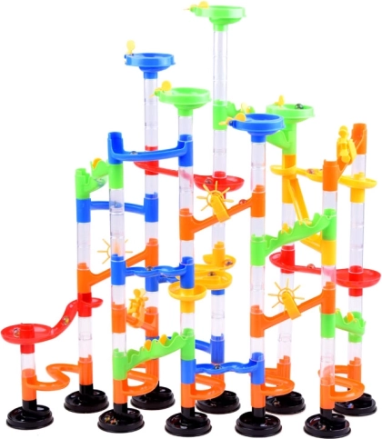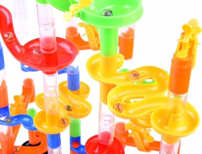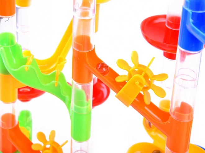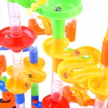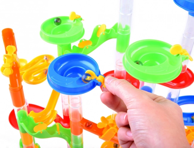 Táto guľôčková dráha je ideálna pre deti, ktoré milujú stavaníe a experimentovanie. Z farebných plastových dielov ľahko zostavíte špirály, mosty, komíny aj kolotoče a vytvoríte tak originálne trate, po ktorých guľôčky plynulo prechádzajú. Súprava obsahuje aj bohatý počet guľôčok pre dynamickú hru.
