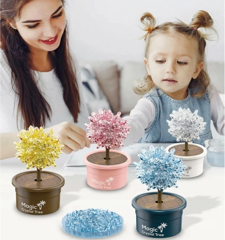 Rôzne farebné varianty kryštálových stromčekov premenia experiment na krásnu dekoráciu. Ak nie je zvolený konkrétny odtieň, farba je odosielaná náhodne.