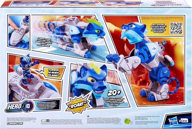 Hračkárska séria PJ Masks zahŕňa hrdinské postavičky, ktoré sa v noci menia na svoje superhrdinské alter ego. Táto spievajúca odvážna mačka je inšpirovaná príbehom o troch malých deťoch. Vďaka svojim viac ako 20 zvukovým a svetelným efektom zabezpečuje neustále dobrodružstvo.