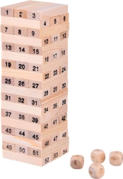Drevená vežová hra je zábavná a napínavá hra pre celú rodinu. Hrá sa s 54 drevenými blokmi, ktoré sa skladajú do veže. Hráči po sebe ťahom vyťahujú jednotlivé bloky a umiestňujú ich na vrchol bez pádu veže. Okrem tradičného spôsobu hry, môžete tiež využiť 4 drevené kocky na vylepšenie herného zážitku.