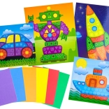 Tvorivá sada pre deti, ktoré radi tvoria. Sada skladajúca sa z farebných obrázkov, ktoré sa lepia pomocou penových štvorčekov, samozrejme s prispôsobením farieb a tvarov.