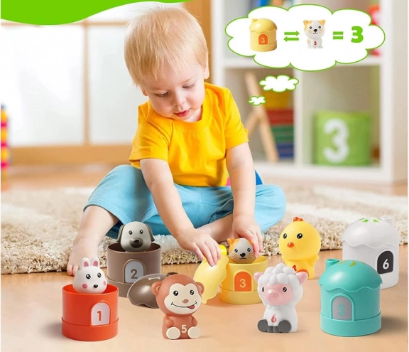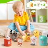 Táto súprava zvieratiek s domčekmi podporuje detskú kreativitu a vzdelávanie prostredníctvom hravej formy učenia sa čísel a rozvoja motorických zručností.