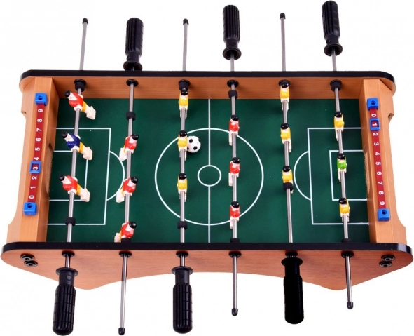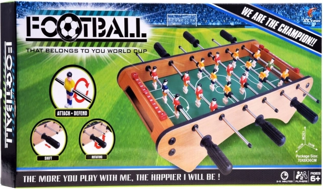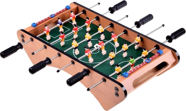 Známu hru stolný futbal v mini verzii na drevenom stole si užijete ako skvelú voľbu pre domácu zábavu. Zažite napätie skutočného futbalového turnaja priamo u vás doma. Táto hra prinesie vzrušenie každému fanúšikovi futbalu.