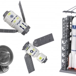 Tento detailne spracovaný set prináša deťom autentický zážitok z kozmických výprav. Veľká raketa je pripravená na štart, menší model so štartovacou stanicou umožní prehrať štarty aj pristátia a satelity s pohyblivými panelmi možno umiestniť do rôznych „orbitov“.
