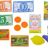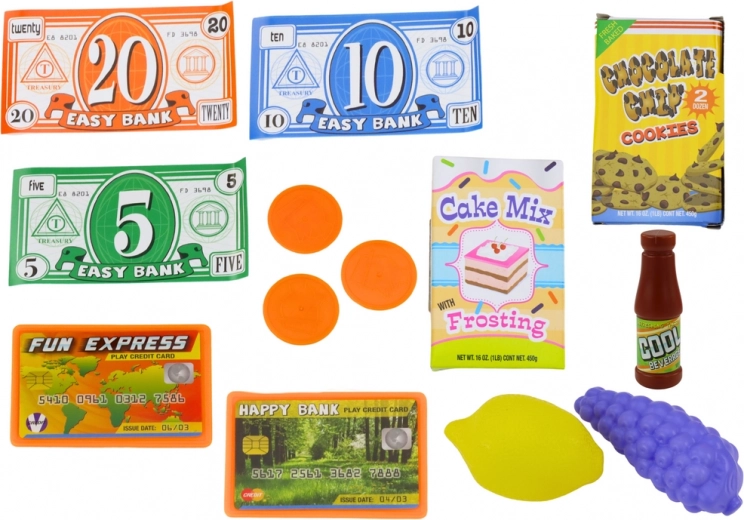 Sada zahŕňa herné peniaze, bankovky, mince a platobné karty, čo je vynikajúca príležitosť na učenie sa počítania peňazí a rozvoj interpersonálnych zručností cez simuláciu obchodných interakcií.