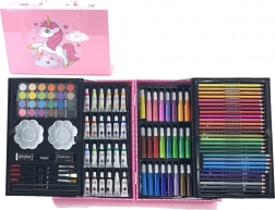 Zažite radosť pri vytváraní umeleckých diel s touto kompletnou 145-dielnou umeleckou sadou. Uložená v štýlovom modrom kufríku s motívom jednorožca, táto sada je ideálna na rozvoj kreativity a predstavivosti každého dieťaťa.