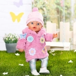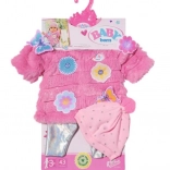Zohrejte svoju bábiku v rozkošnej súprave BABY born pre 43 cm bábiky. Set obsahuje mäkučký ružový kožúšok s trblietkami, kovovo lesklé legíny a čiapočku s brmbolcom. Ozdobné kvetinové a motýlie nášivky dodajú outfitu čaro a štýl, zatiaľ čo kvalitné materiály zaistia pohodlné obliekanie a dlhú výdrž pri každodennej hre.