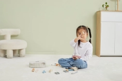 Drevená zubárska sada Viga PolarB podporuje hru na roly, logické myslenie aj jemnú motoriku. Deti môžu bezpečne objavovať, ako fungujú zubárske nástroje, trénovať správnu starostlivosť o zuby a zároveň odbúravať strach z ambulancie. Model chrupu s odnímateľnými zubami umožňuje realistické „ošetrenie“ aj výmenu zúbkov.