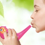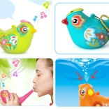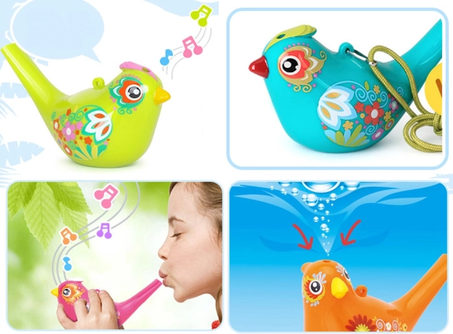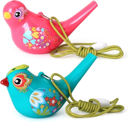Táto vodná píšťalka v tvare vtáčika je ľahká, odolná a ideálna pre deti. Bez vody vydáva čistý, jasný tón; po naplnení malým množstvom vody začne vtáčik melodicky štebotať. Hlasitosť a výšku tónu ľahko ovplyvníte množstvom vody a silou fúknutia.