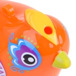 Farebné vzory a tvar vtáčika motivujú deti k tvorivej hre a objavovaniu zvukov.