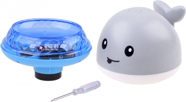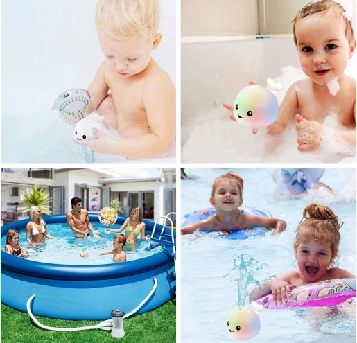 Roztomilá vodná veľryba premení každé kúpanie na zábavu. Po ponorení sa sama aktivuje, strieka vodu ako mini fontánka a sprevádzajú ju farebné LED svetielka. Po umiestnení na platformu sa rozbehne, hýbe sa v rytme veslej hudby a svieti – ideálne do vane, bazéna aj na hravé chvíle v kúpeľni.