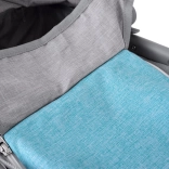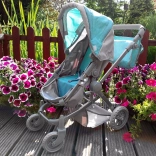Nastaviteľná mäkká rukoväť, bezpečnostné pásy, skladacia strieška a priestranný košík dopĺňa odnímateľná taška na príslušenstvo.