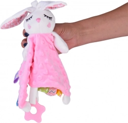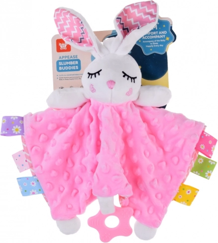 Roztomilý plyšový maznáčik v tvare zajačika s mäkkučkou dekou, farebnými štítkami a silikónovým hryzátkom poskytuje bábätku pokoj a istotu. Podporuje zmyslový rozvoj, ponúka rôznorodé textúry, šušťavé a pískacie prvky a je ideálny do postieľky, kočíka aj autosedačky.
