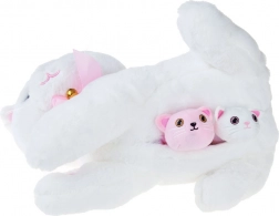 Dve malé mačiatka schované v brušku maminky podporujú opatrovateľskú hru a rozvoj fantázie. Mäkučký plyš láka k objatiu.